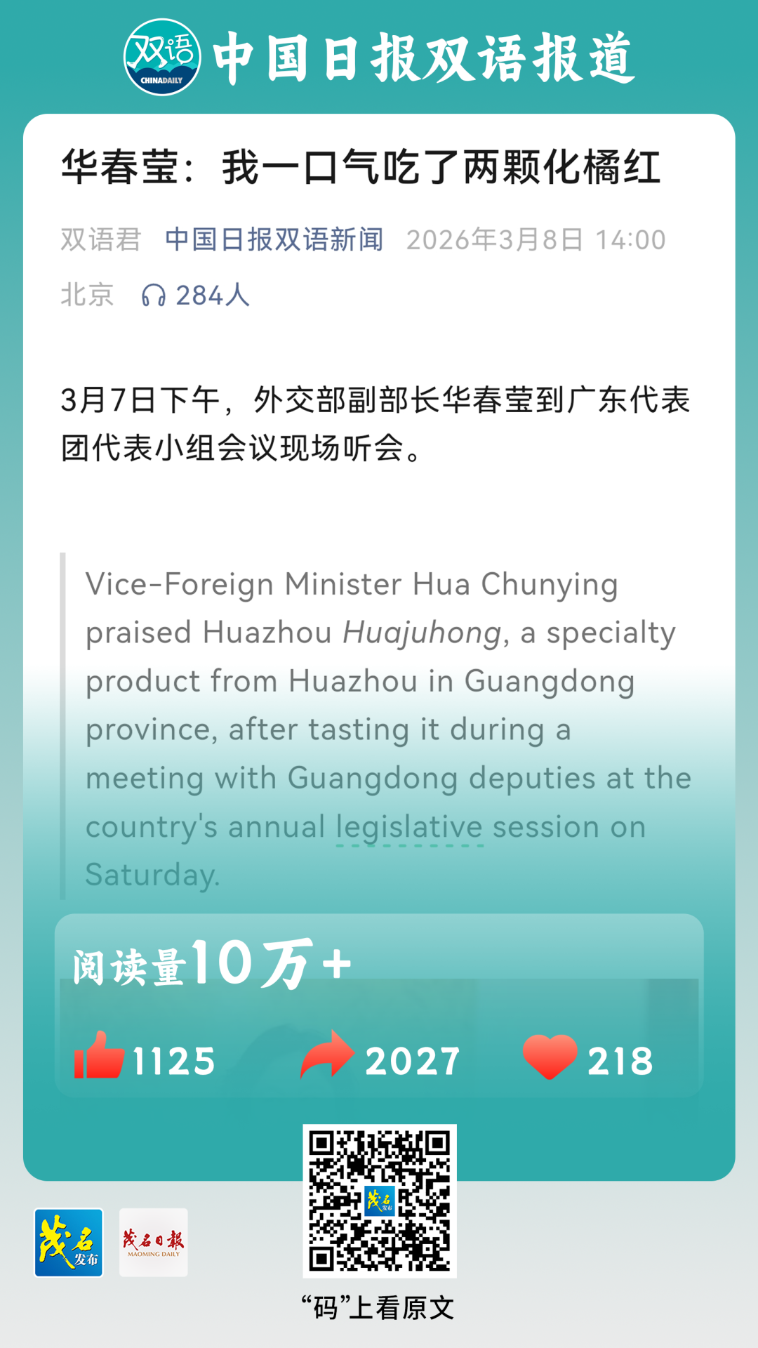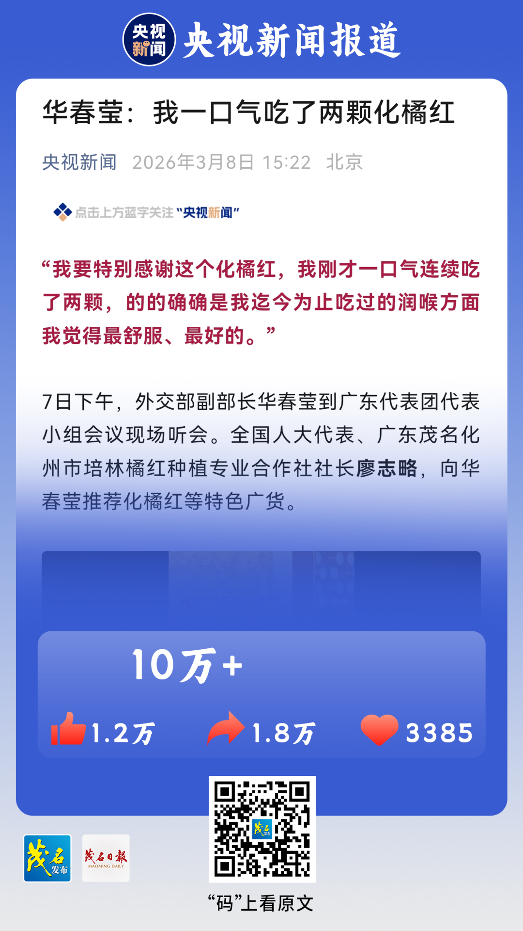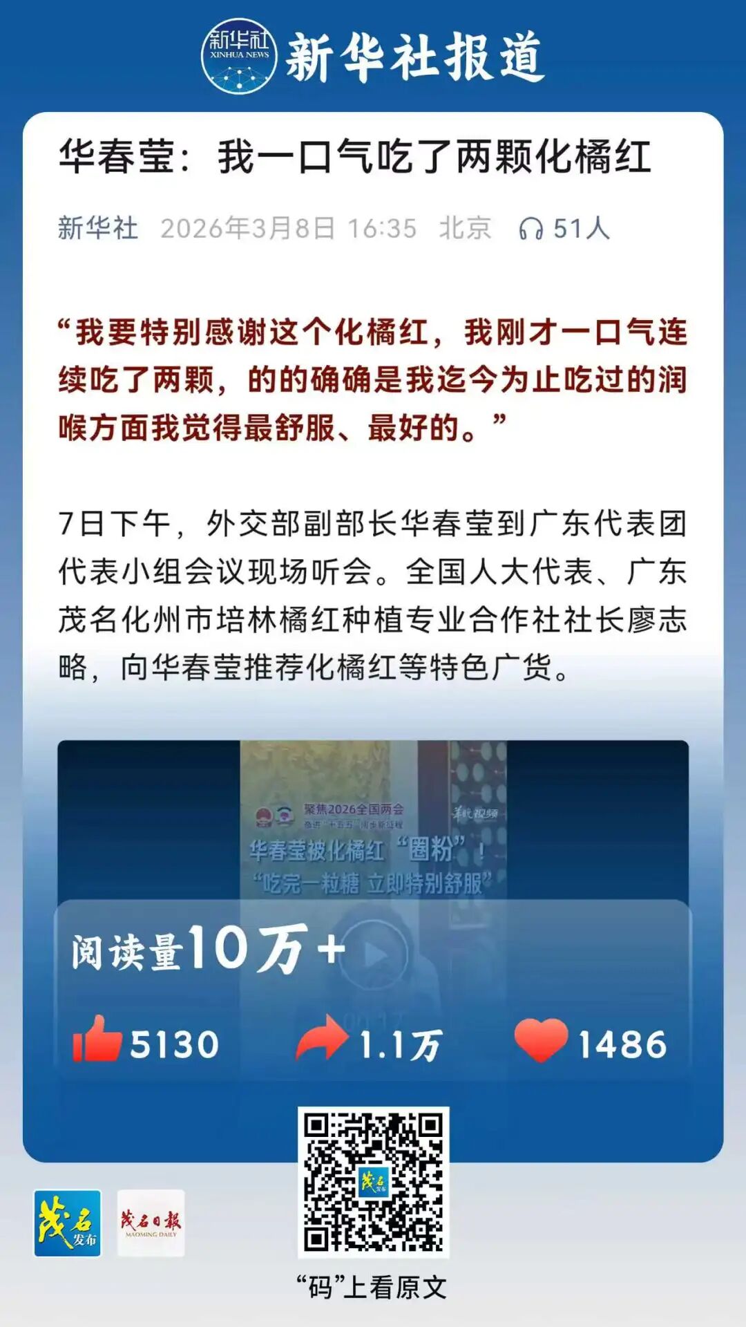 向华春莹推荐化橘红等特色广货