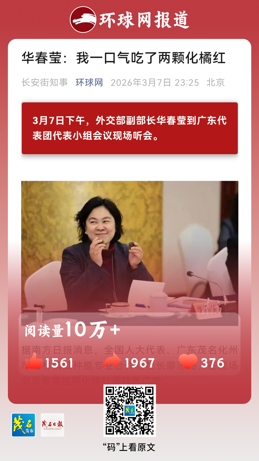 华春莹在吃了